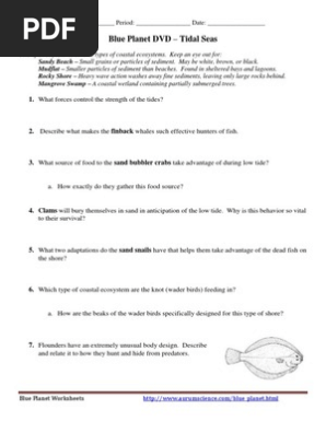 Blue Planet Tidal Seas Worksheet